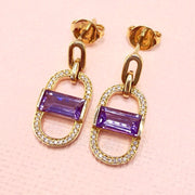 14k Yelow Gold Genuine Amethyst & Diamond Monernist Dangle Earrings, New