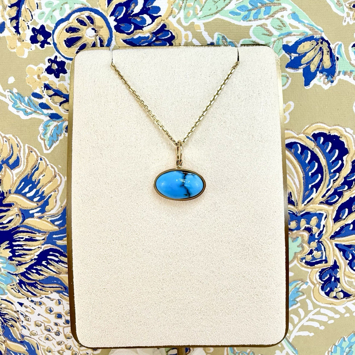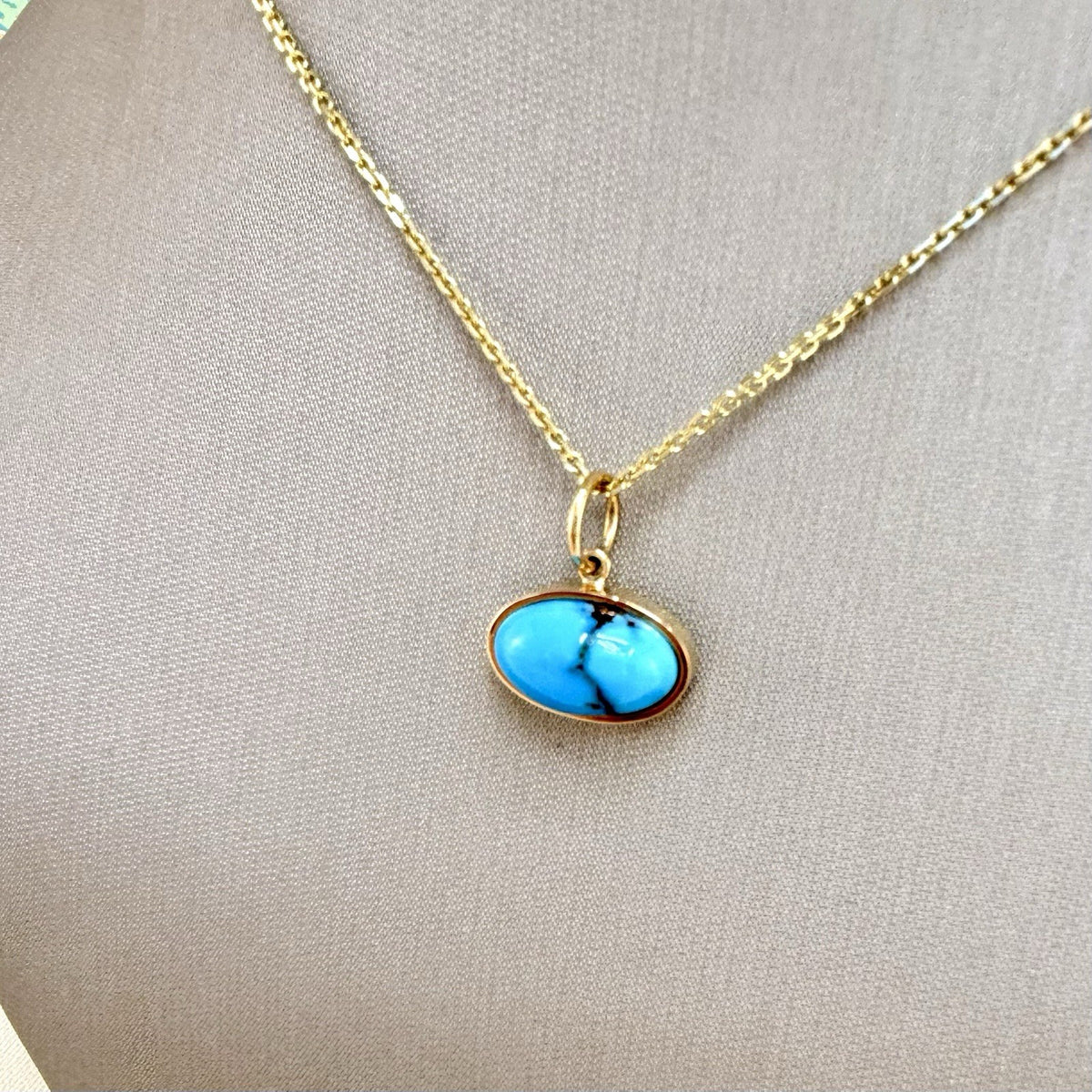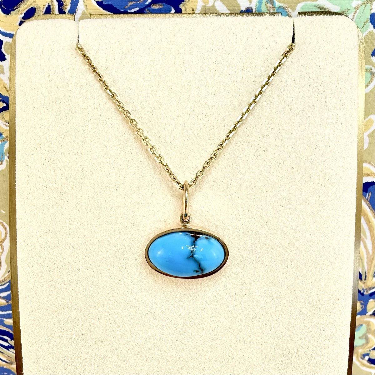 Modernist 14k Yellow Gold Natural Egyptian Turquoise Custom Made Pendant, Unisex